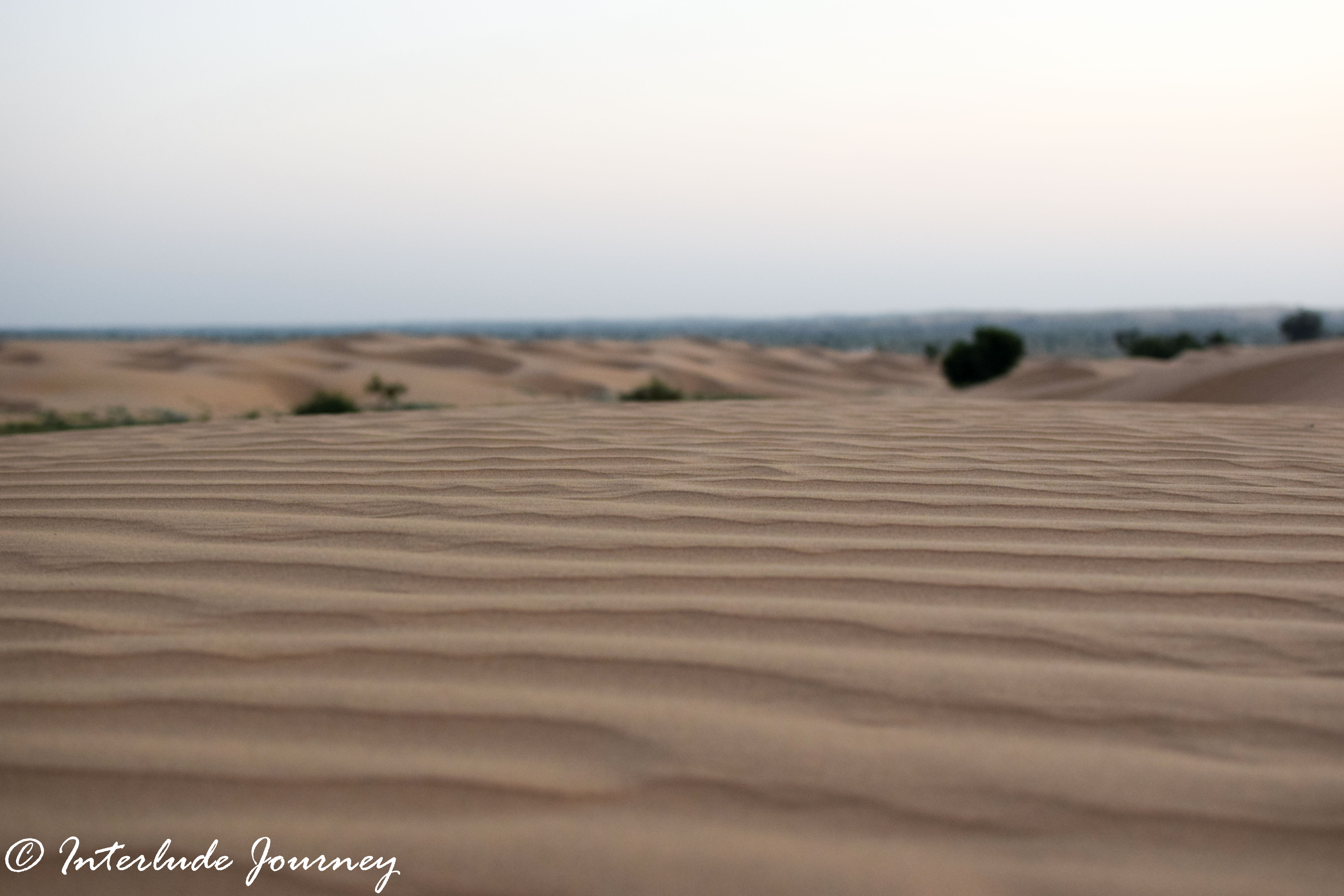 There were herds of nilgais( the largest Asian antelope) and chinkaras (Indian Gazelle) on either side of the road. We so wanted to stop and photograph the animals that were fearlessly grazing by the roadside but we could not do so for lack of time. Â After losing and finding our way multiple times, we finally arrived at Kuntlai Nala just in time before sunset. What we saw was the sunset of a lifetime. I cannot put into words the excitement of having the entire stretch of land all to ourselves. There was not a single soul other than us. There were no camels to ride and no vendors to pester us to buy stuff. Â The view was overwhelming. The dunes looked as if someone had crafted them in perfect shape. Â The small shrubs that had grown in patched set a perfect contrast to break the golden hues of sand. The huge star which was racing to descend beyond the horizon before we reached the dunes all of a sudden decided to slow down a bit. We sat there as the big ball of fire disappeared behind the dunes. It was our zen movement and there was nothing to disturb us. The light was perfect for photography but I could not concentrate much on capturing pictures. All I could do was sit there and watch for I was not sure if I would get to see such spectacle again.
